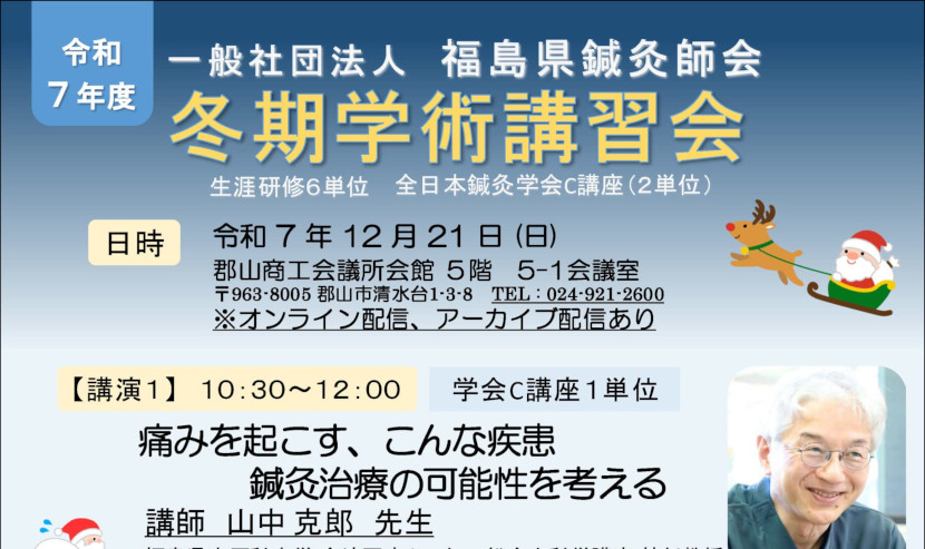 2025年12月21日(日) 10:30 ~ 16:10 福島県鍼灸師会 冬期学術講習会 兼 全日本鍼灸学会C講座