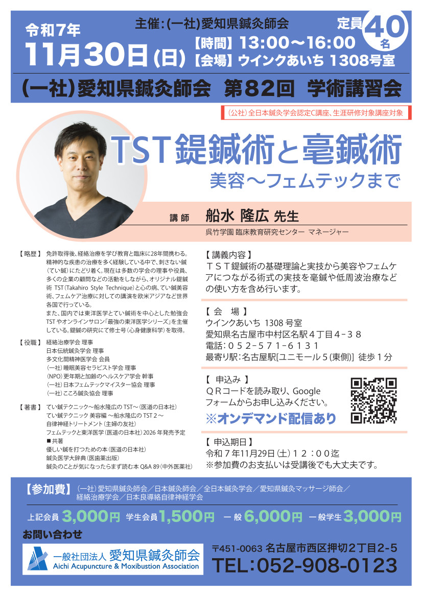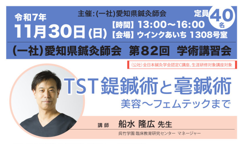 2025年11月30日(日) 13:00 ~ 16:00 (一社)愛知県鍼灸師会 第82回学術講習会