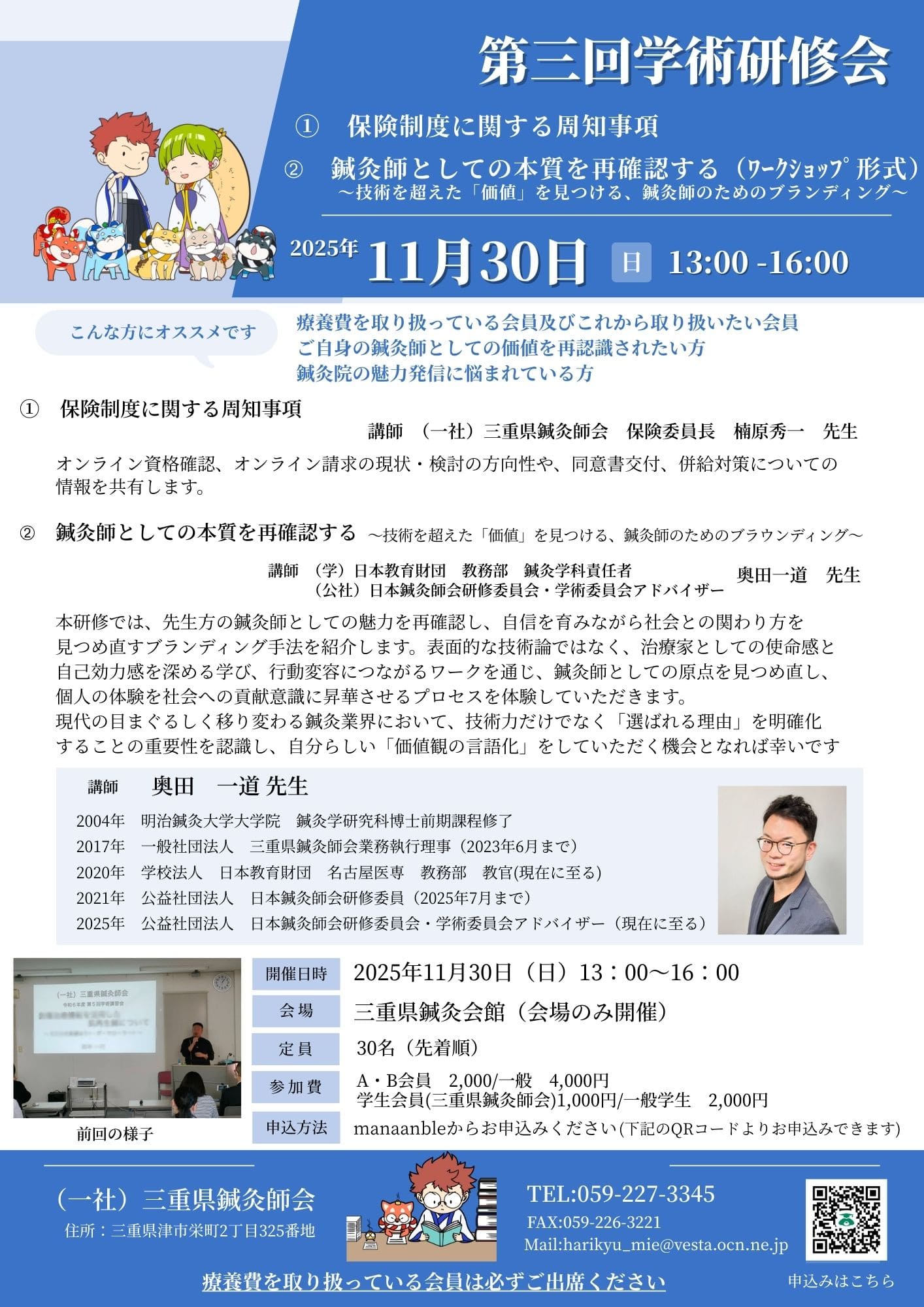 2025年11月30日(日) 13:00 ~ 16:00 令和7年度第3回学術研修会